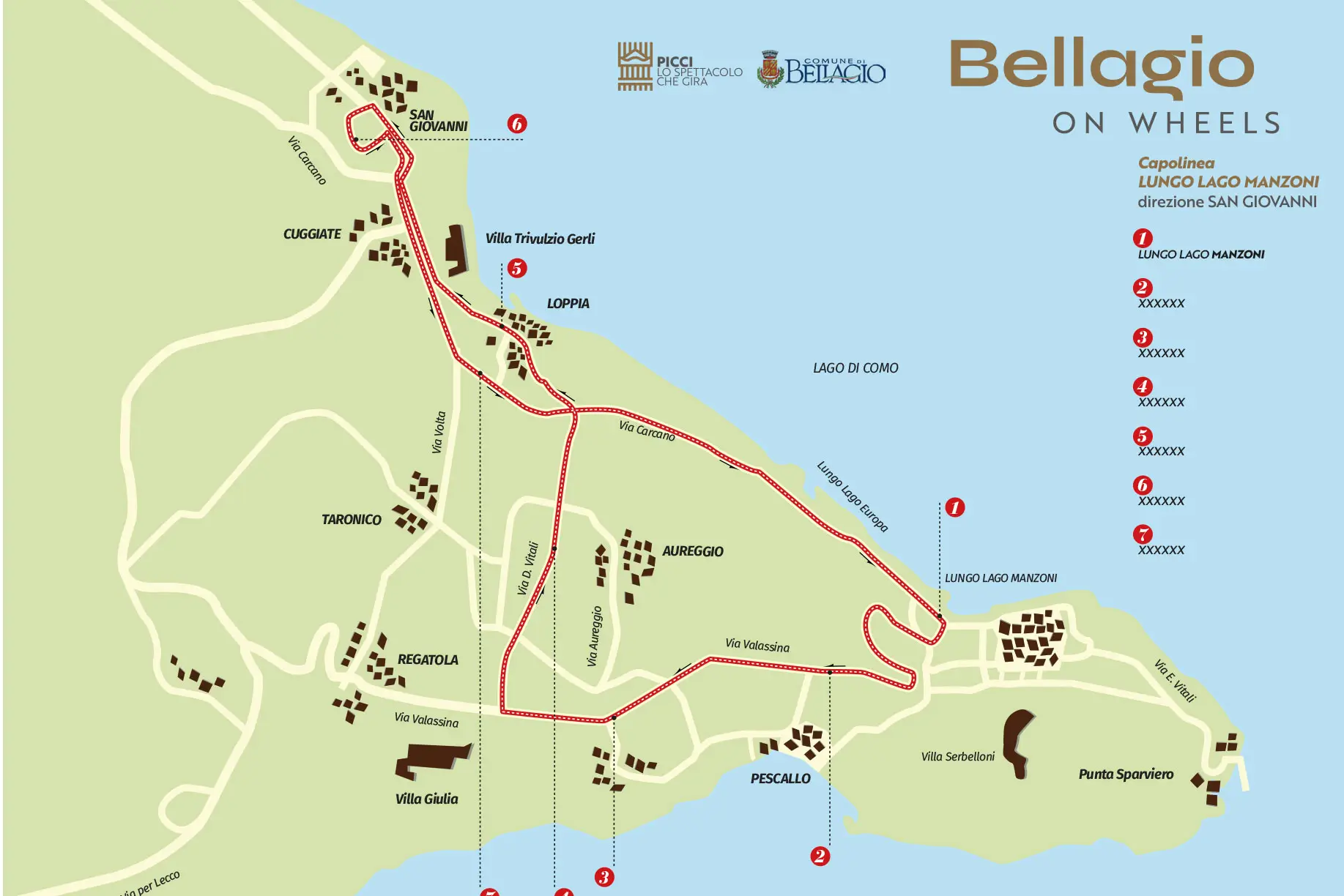 Bellagio on Wheels offers a 25-minute panoramic tour aboard an electric mini-train, taking visitors through the most picturesque corners of Bellagio. The route includes the lakeside promenade, the public park, charming historic streets, and panoramic viewpoints overlooking Lake Como and its elegant villas.